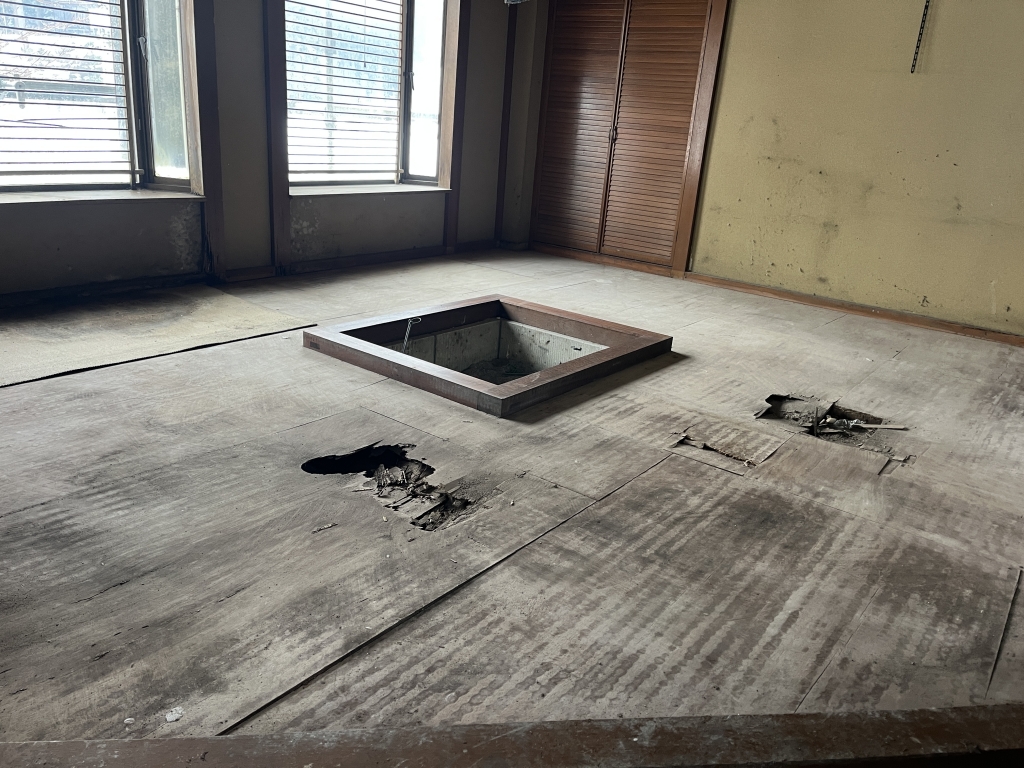 (奥の床穴は戸河さんが、